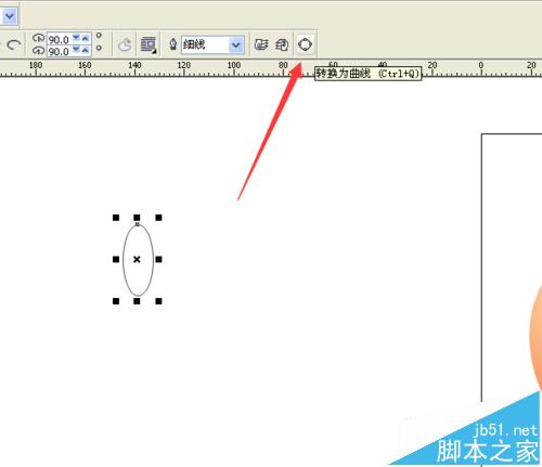 4、點擊屬性欄的“轉換為曲線”的按鍵,將橢圓轉換為曲線。