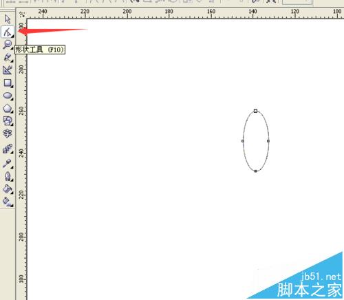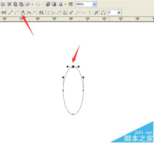 5、接著,選擇形狀工具,點擊橢圓上邊的節點,再點擊屬性欄的“使節點成為尖突”的按鍵。