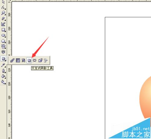 13、選擇”交互式陰影工具",將蘋果拉出一個陰影來。