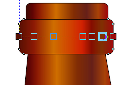 8、繪制瓶蓋處包裝圖形 選擇工具箱中的“矩形工具”在瓶頸上繪制一個輪廓圖形,在屬性欄中設(shè)置“邊角圓滑度”為20,然后填充和瓶頸相同的漸變色,填充效果如圖所示。選中圓角矩形按快捷鍵Ctrl+C復(fù)制,再按Ctrl+V粘貼一份,并向下移動。