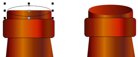 11、繪制瓶蓋圖形 選擇“橢圓形工具”,在瓶頸圖形上方繪制一個橢圓,填充漸變顏色,圖像效果如圖所示。