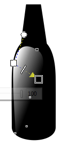 3、繪制高光輪廓 選擇工具箱中的“貝塞爾工具”,在瓶子上繪制一個高光輪廓圖形,并選擇工具箱中的“形狀工具”進行編輯,選中高光輪廓圖形,然后單擊調(diào)色板中的白色對圖形進行填充 ,得到效果如圖所示。