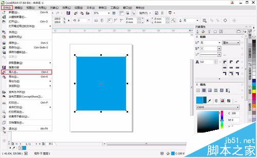 5、為了區(qū)分矩形和背景紙張的區(qū)別,我們在“右側”的“默認調色板”中,點擊藍色。讓矩形里面充滿藍色。