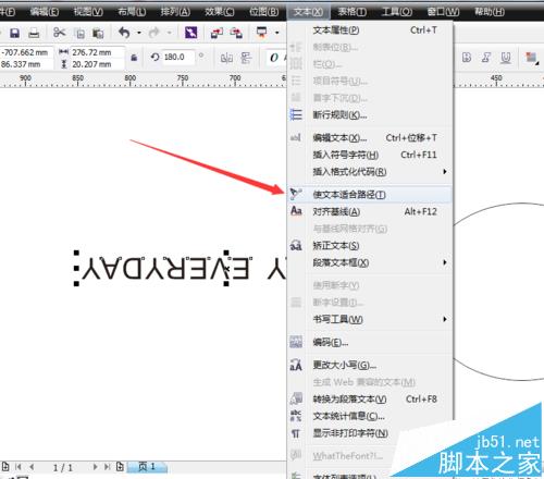 4、選中需要修改的文本-點菜單欄上的文本-選擇使文本適合的路徑。