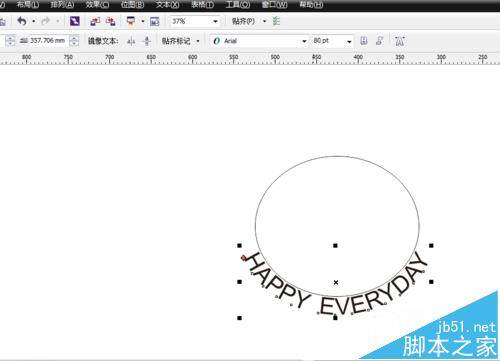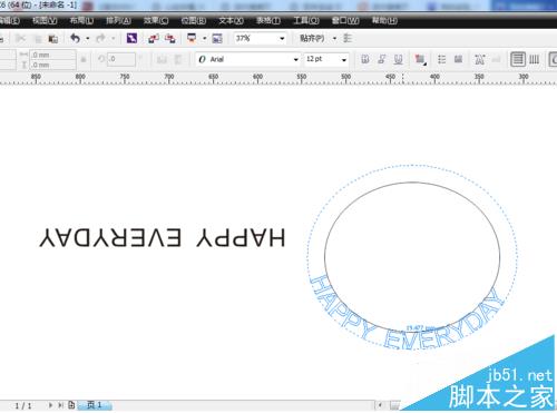 當在弧形曲徑下面做弧形英文,系統默認是順時針放心排列的,如圖。
