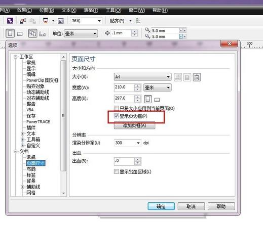 4、選擇后,窗口切換為如圖所示,可以看到顯示頁邊框處于勾選狀態