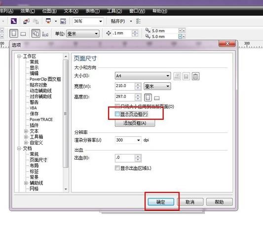 5、如圖所示,取消頁邊框的選中狀態,使其處于不勾選狀態,單擊確定選項