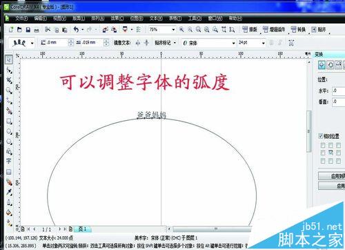 7、在cdr中左上角一欄,可以調(diào)動弧形的弧度,同時按住快捷鍵“f10”修改字體的間距。