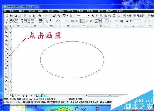 2、在cdr左邊一欄里,點擊第八個圓,畫一個橢圓,如圖所示: