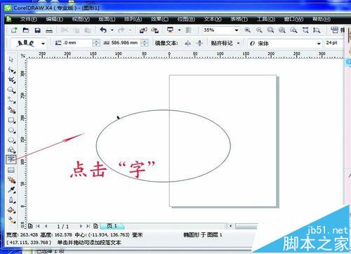 3、同樣在左邊一欄里,點擊“字”這個符號,然后在所畫的橢圓上點擊一下,如圖