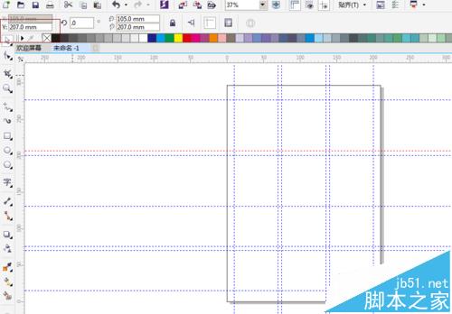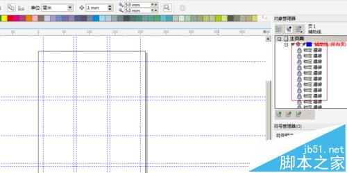 5、添加輔助線,并計算好高度,中間縫大小 ,豎向格子與格子之間間隔為6mm,最底下橫向輔助線為15mm,拉好輔助線,并鎖定。