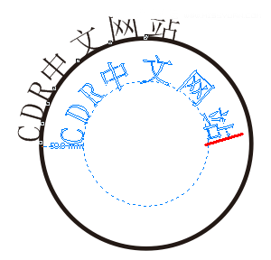 步驟3:拖動文字更改位置到圓輪廓里面、確定路徑的距離以及偏移角度到正常距離。