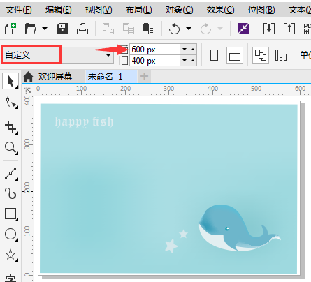 如果直接在“頁面度量”數值框中輸入600*400px,那么當前的頁面大小將變為“自定義”,繪圖頁面出現您所設置的紙張大小,如圖所示。