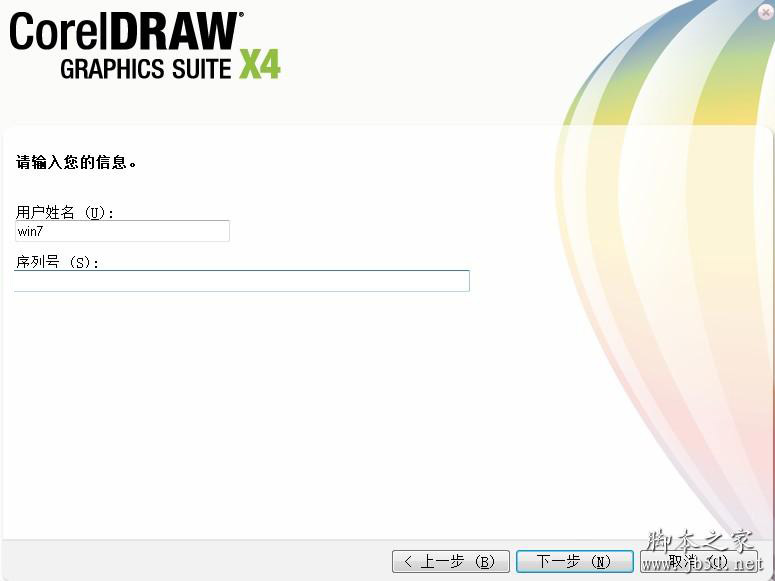 2、在此輸入CoreDRAW X4的序列號,輸入完成之后點擊下一步按鈕,進行CoreDRAW X4的下一步安裝過程: