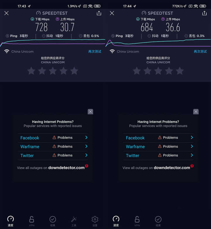 我們也測試了小米AX1800在網絡方面的表現,通過在小米AX1800路由器旁和距離其5米左右的距離測試網絡時,我們可以看到小米AX1800的網絡峰值衰減微乎其微,甚至可以說是基本處于持平的狀態。