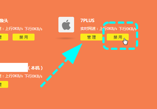 6、禁用成功,此蘋果設(shè)備將出現(xiàn)在【已禁設(shè)備】列表,無法上網(wǎng),完成;