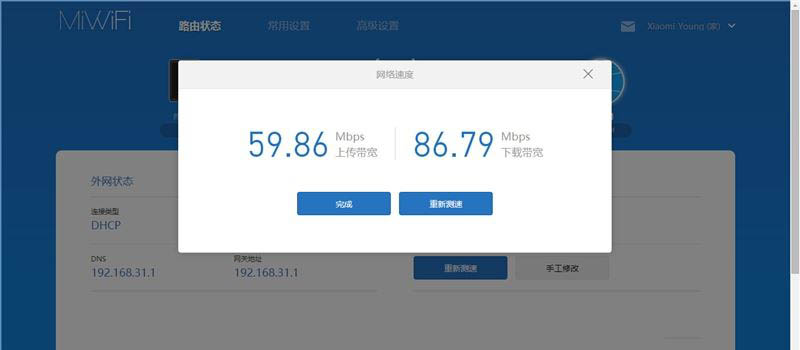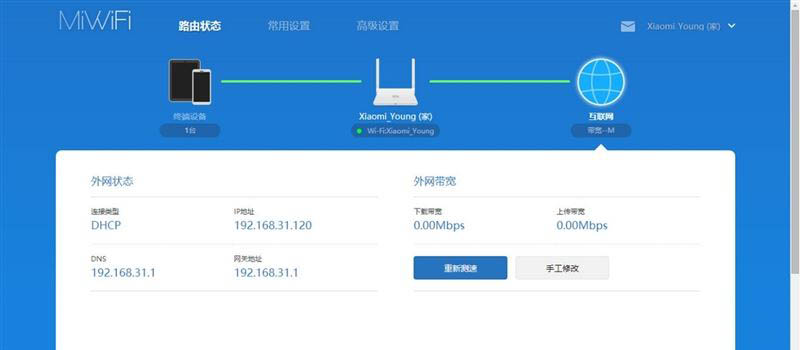 主頁分為三個(gè)子菜單,分別是路由狀態(tài)、常用設(shè)置和高級(jí)設(shè)置,首次使用時(shí)推薦點(diǎn)擊互聯(lián)網(wǎng)測下速度,這對(duì)后邊的智能限速功能有幫助。