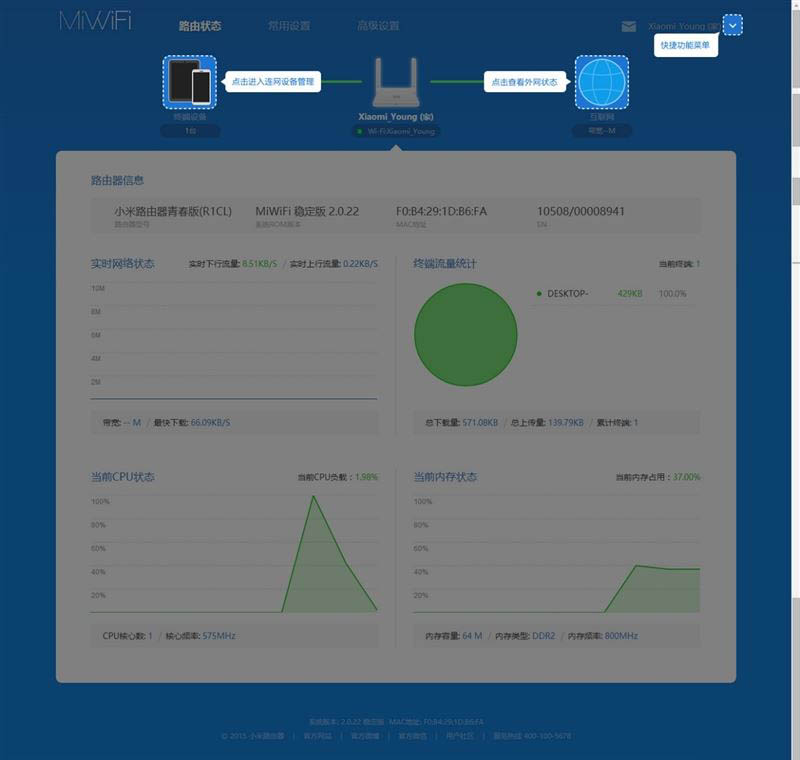 設(shè)置好Wi-Fi網(wǎng)絡(luò)之后,我們來看看小米路由器青春版究竟有哪些功能: