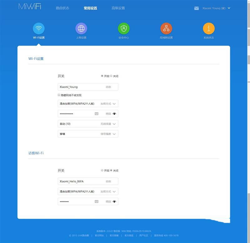 常用設(shè)置分為Wi-Fi設(shè)置、上網(wǎng)設(shè)置、安全中心、局域網(wǎng)設(shè)置以及系統(tǒng)狀態(tài)幾個(gè)子菜單。