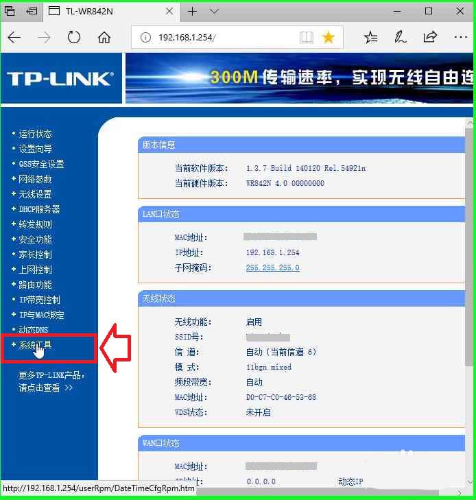 4、在"TL-WR842N 路由器- Microsoft Edge"中左鍵單擊:系統(tǒng)工具。