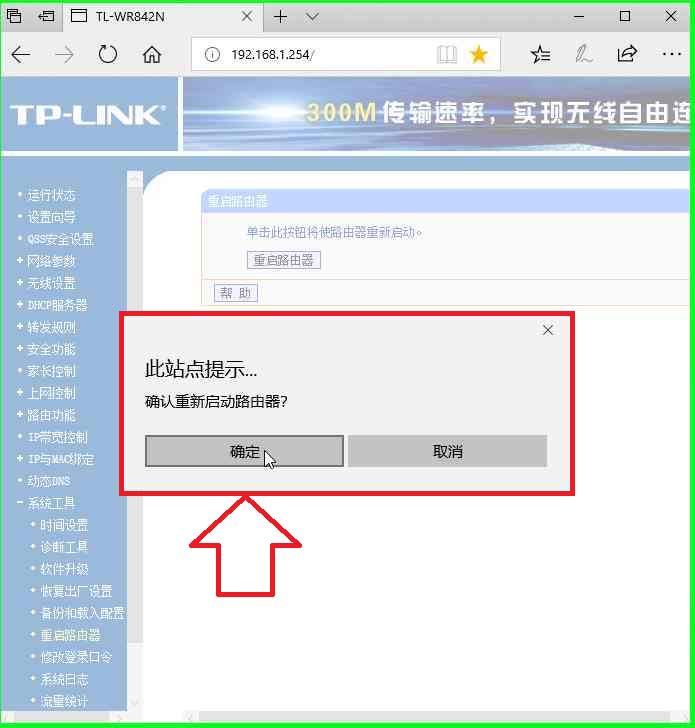 7、在"確定 (按鈕)"上左鍵單擊(在"TL-WR842N路由器 - Microsoft Edge"中)。