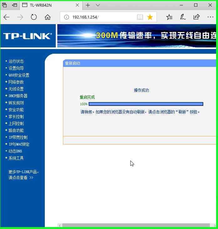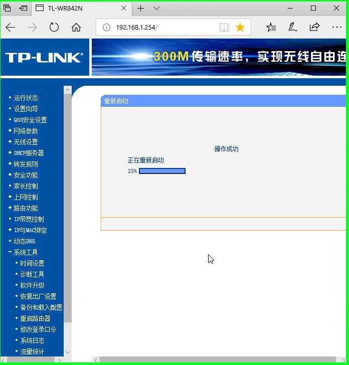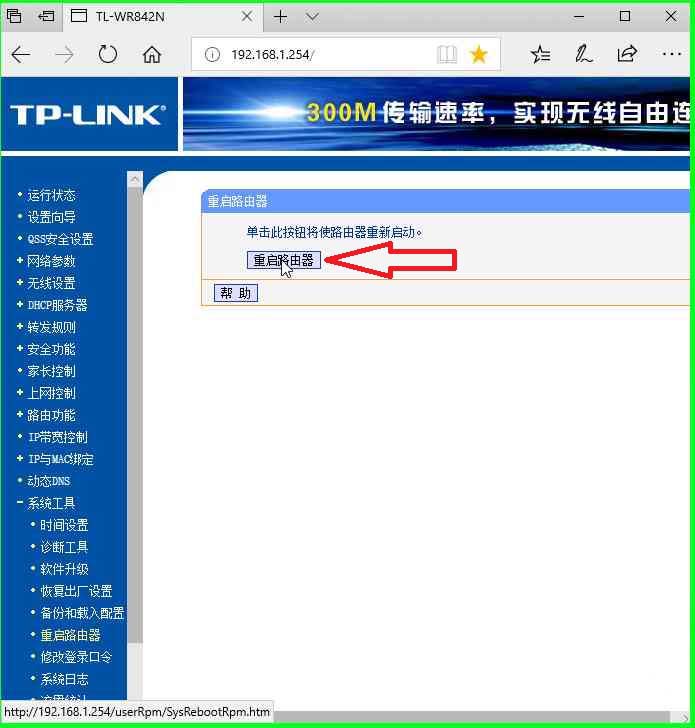 5、在"TL-WR842N路由器 - Microsoft Edge"中左鍵單擊;重啟路由器。