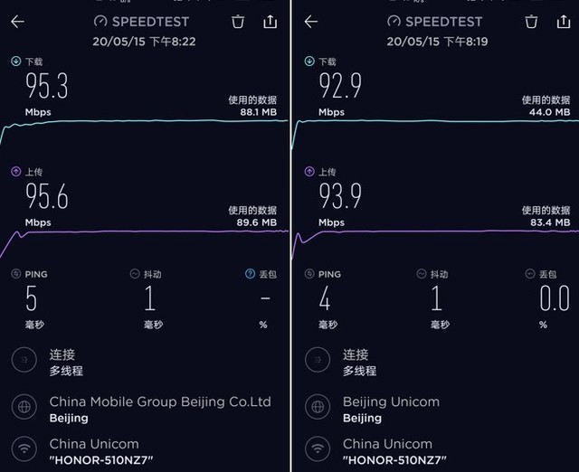 Wi-Fi6+網(wǎng)絡(luò)下 連續(xù)兩次Speedtest測速數(shù)據(jù)