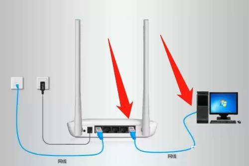 3、然后用網(wǎng)線連接路由器的LAN口與電腦的網(wǎng)線插口,如下圖所示。