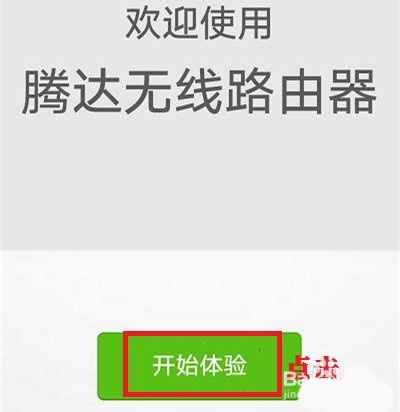 3、連接上WiFi后(此時是不能正常上網的),手機會自動打開瀏覽器轉到路由器設置界面,或者手動輸入tendawifi.com點擊回車進入路由器設置界面,點擊“開始體驗”;