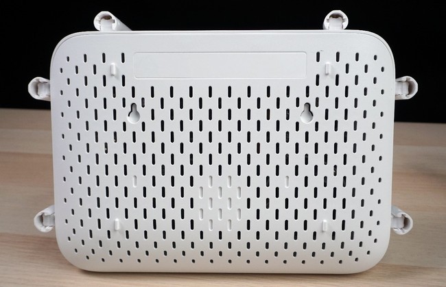 它的頂部由Redmilogo、指示燈與散熱孔組成。這些散熱孔孔徑較小,密度較大,可以在散熱的同時有效阻擋室內(nèi)的灰塵。它的底部則由很多大號散熱孔與四個塑料腳墊組成。這樣做的好處便是,當(dāng)路由器發(fā)熱時,熱空氣就會從路由器的上方排出,同時冷空氣也會從路由器底部被吸入,這樣就形成了一個自然的散熱循環(huán),既可以使路由器的內(nèi)部保持清涼,又可以使它免受積灰的打擾。而且它的底部還預(yù)留了掛裝孔位,對于喜歡將路由器掛起的朋友來說,這無疑是非常貼心的。
