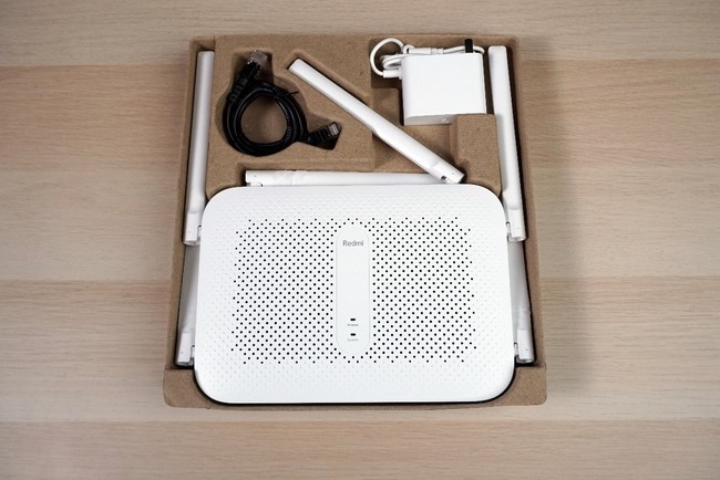 打開包裝后發(fā)現(xiàn),Redmi路由器 AC2100 的配件分別為一根長度為1m左右的RJ45網(wǎng)線與一個DC接口的充電頭(線長1m左右),可以輕松應(yīng)對大部分家庭對于路由器擺放位置的需求。與此同時,1m左右的線長也避免了線材過長所造成的雜亂現(xiàn)象。