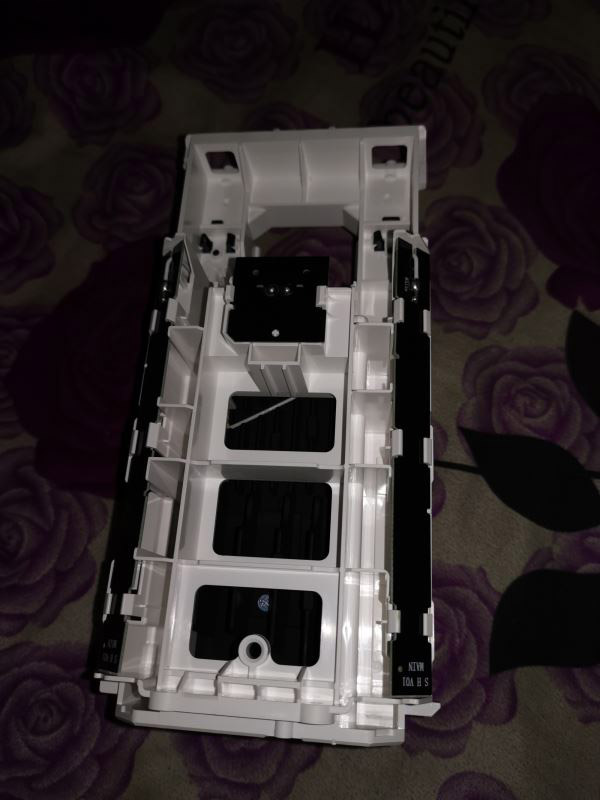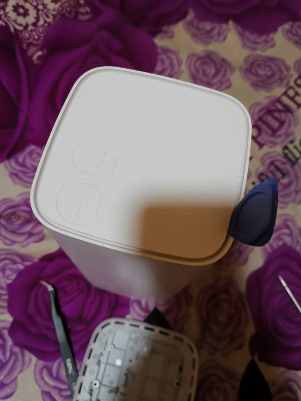 此時還無法取出主板,翻轉后把頂部朝上,拆機撬片沿著頂部縫隙劃一圈,取下頂蓋