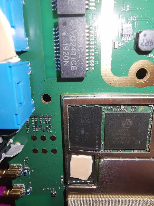 拆下散熱片,散熱片底下導熱硅脂所覆蓋的屏蔽罩下面就是巴龍5000