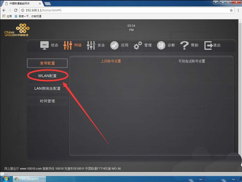 6、打開(kāi)網(wǎng)絡(luò)配置后,點(diǎn)擊左側(cè)邊欄里面的“WLAN配置”