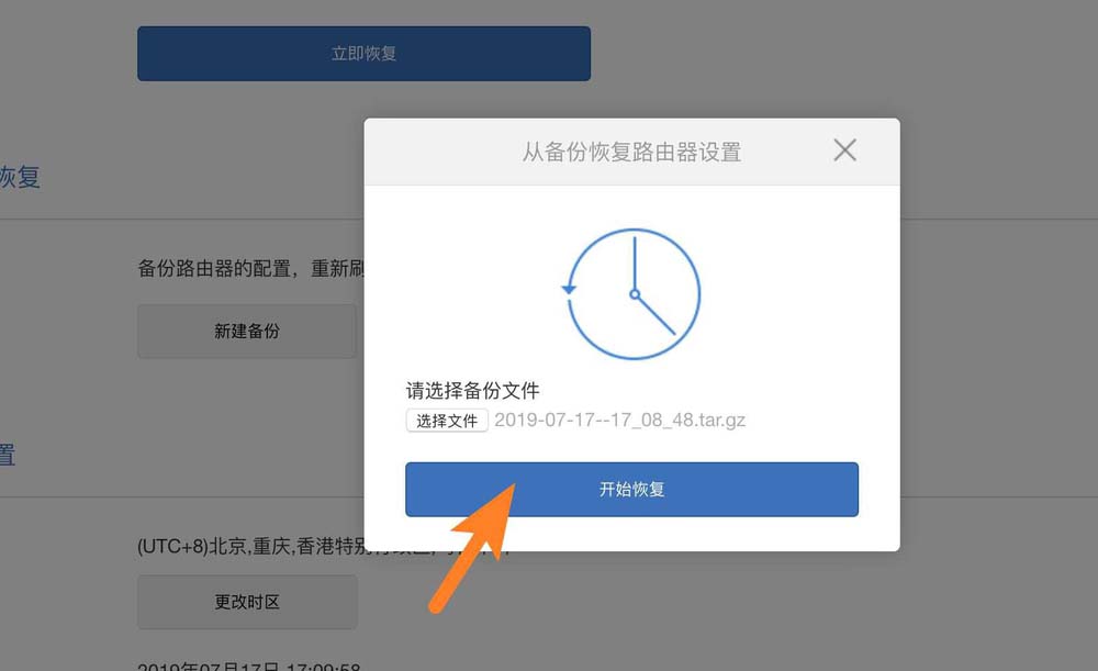 6、要恢復(fù)路由器,則點(diǎn)擊立即恢復(fù),點(diǎn)擊選擇文件。