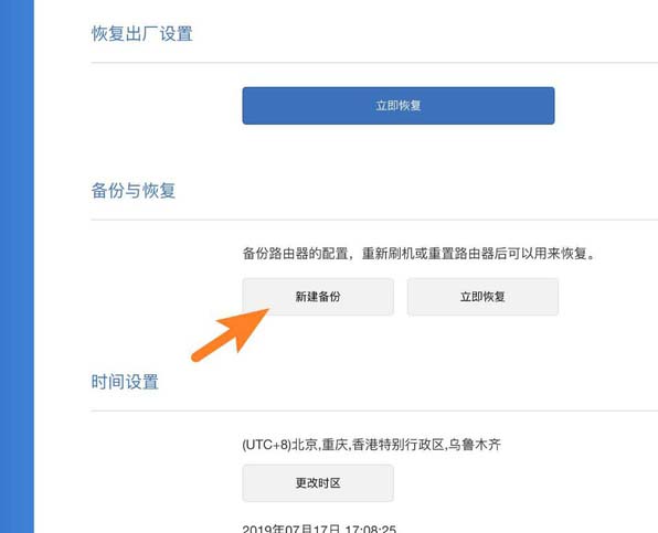 4、找到備份與恢復(fù),備份路由器點(diǎn)擊新建備份。
