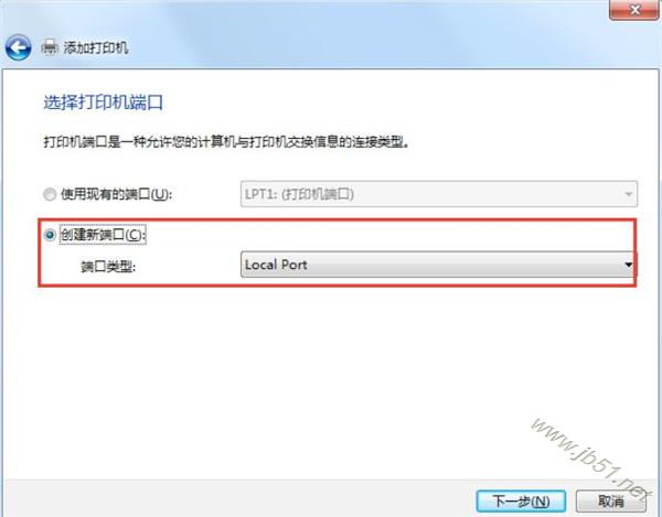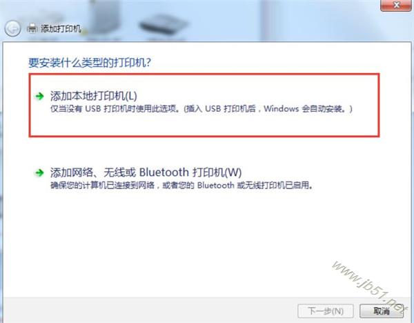 2.選擇[添加本地打印機], 并點擊[下一步]。