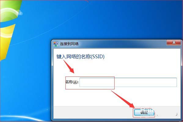 2、在彈出的對話框中輸入無線網(wǎng)絡(luò)名稱,然后點(diǎn)擊“確定”。