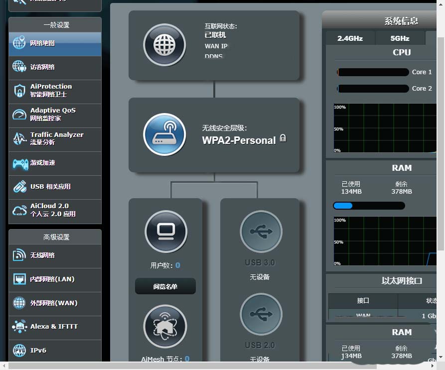 1、現在一般稍好點的路由器都可以外掛硬盤使用,一華碩AC88U說明如何看路由器外掛硬盤,進入路由器后臺管理畫面。