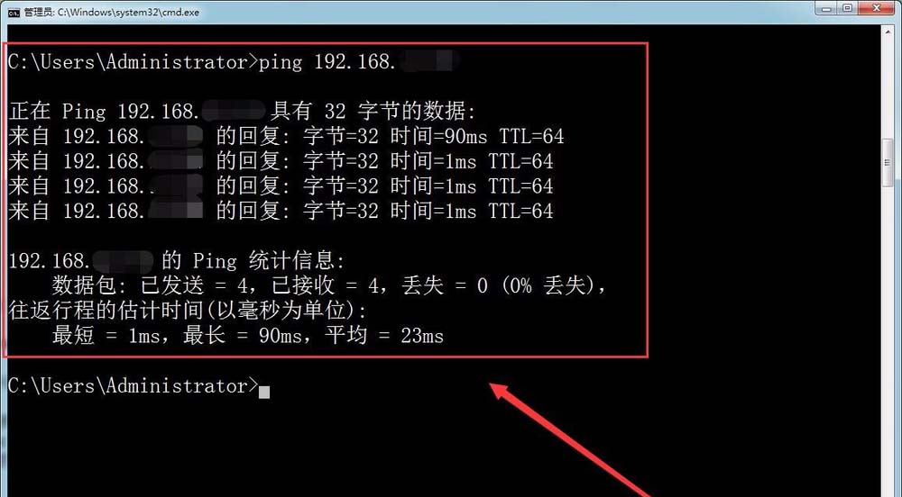 4、單擊回車鍵后,就可以ping通二級(jí)路由器下的設(shè)備了。