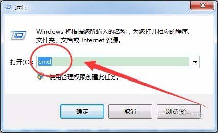 2、運(yùn)行窗口中,輸入cmd,單擊確定。