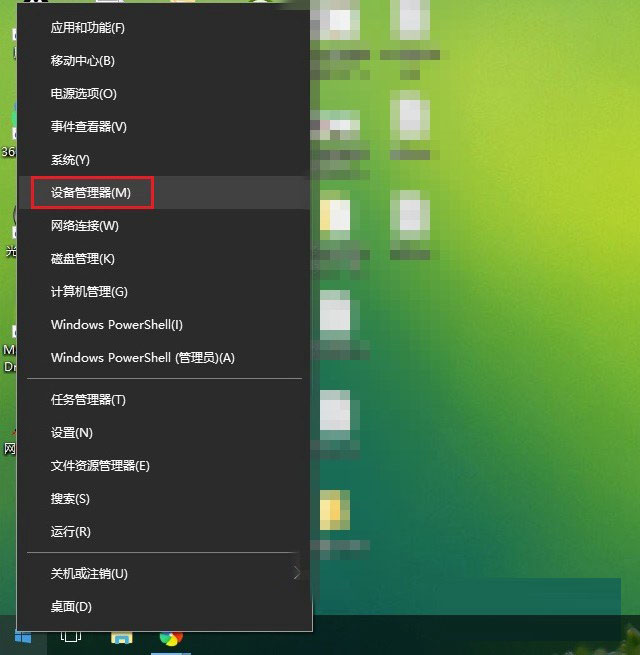 一、首先在左下角的開始圖標(biāo)上,點(diǎn)擊鼠標(biāo)右鍵,然后點(diǎn)擊打開“設(shè)備管理器”,如下圖所示。