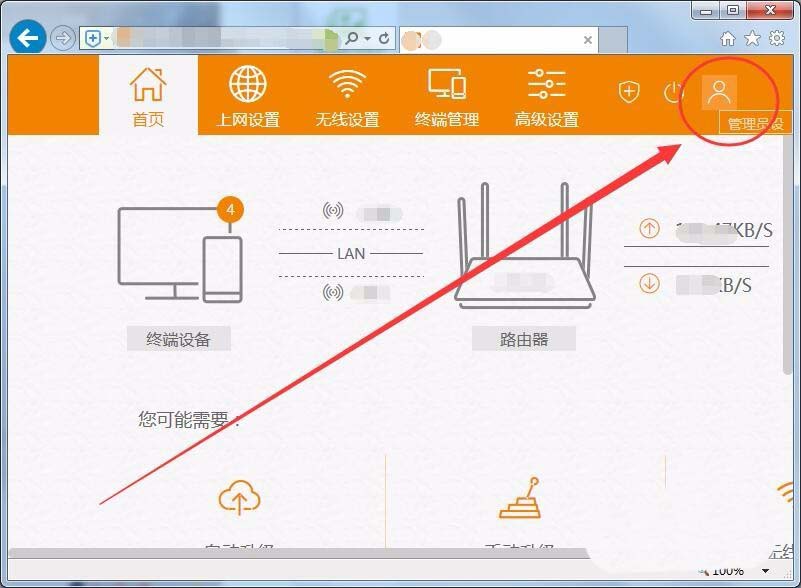 3、有的路由器第一次登錄時,會要求你設置一個登錄密碼,在此處設置路由器密碼即可。進入路由器設置頁面后,選擇右上方的管理員設置選項。