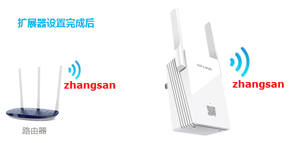 4、設置完成后,擴展器的TP-LINK_RE_XXXX信號就消失了,此時擴展器發射的信號和主信號一致,真正起到了放大信號的作用。