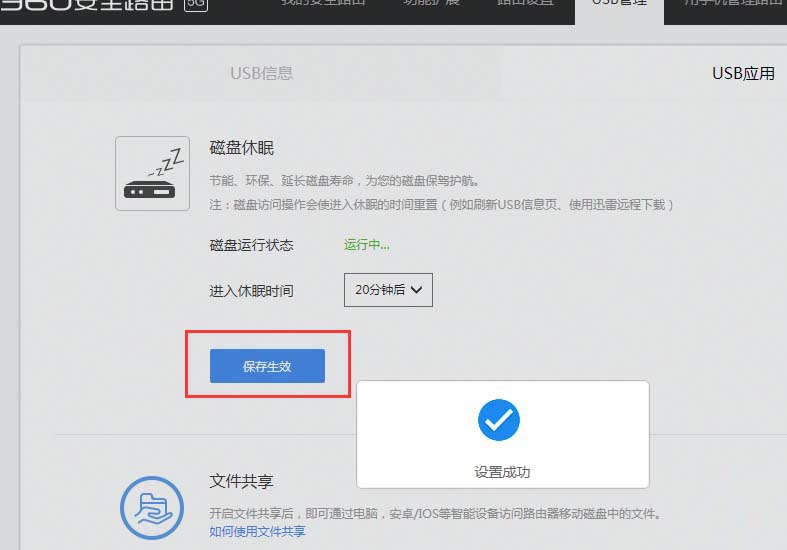 以上就是360路由器設置U盤休眠時間的教程,希望大家喜歡,請繼續關注武林網。