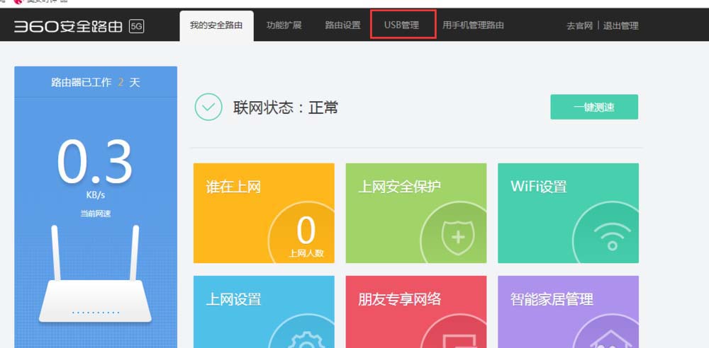 2、在主界面中,點擊菜單欄中的“USB管理”,進入到USB管理頁面