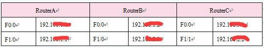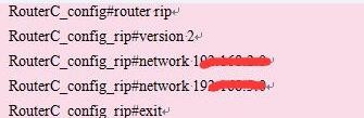 10、在路由器C上配置RIP動態路由協議,命令如下: