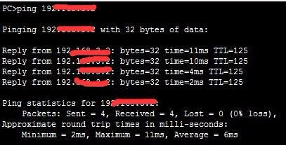 11、在計算機PC1上Ping計算機PC2,測試全網是否連通了。