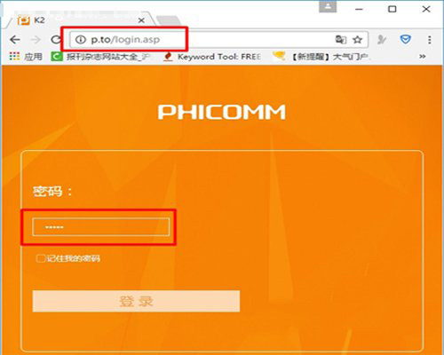 2、在瀏覽器地址欄中輸入第一步中查看到的設置網址,本文中是:p.to——>輸入默認密碼:admin,就可以登錄到設置頁面了。