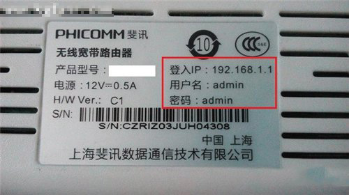 1、在斐訊(phicomm)路由器底部,有一個標簽(銘牌),上面有這臺斐訊路由器的設置網址,如下圖所示。